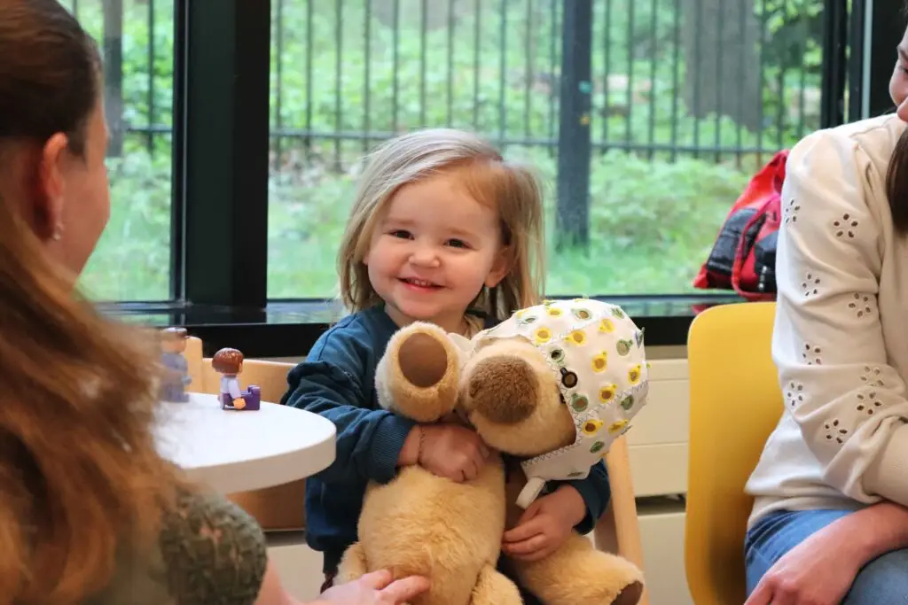 Het onderzoek zelf duurt maar ongeveer 20 minuten. In die tijd doen we de ‘superheldenmuts’ op bij uw kind en speelt hij/zij het spelletje.